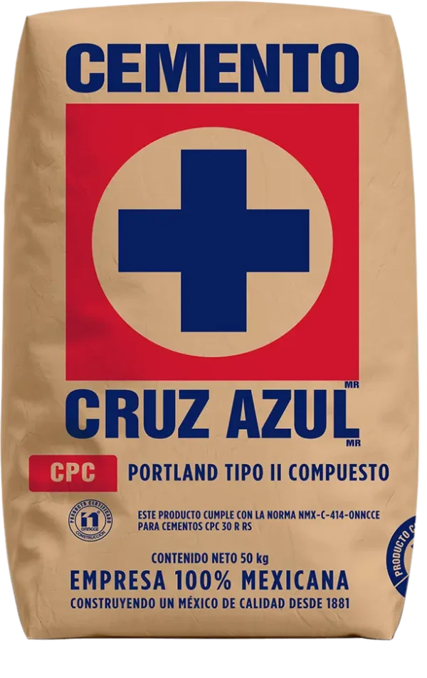 Bulto de cemento gris Portland Tipo II Compuesto CPC Cruz Azul de 50kg.
