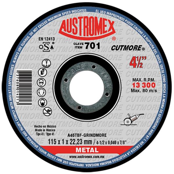 Disco para corte de metal modelo 701, marca AUSTROMEX.